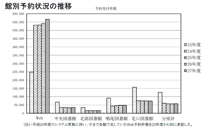 | 鳴尾図書館 | 16,314 | 503 | 5 | 16,822 | 1 | 48 | |