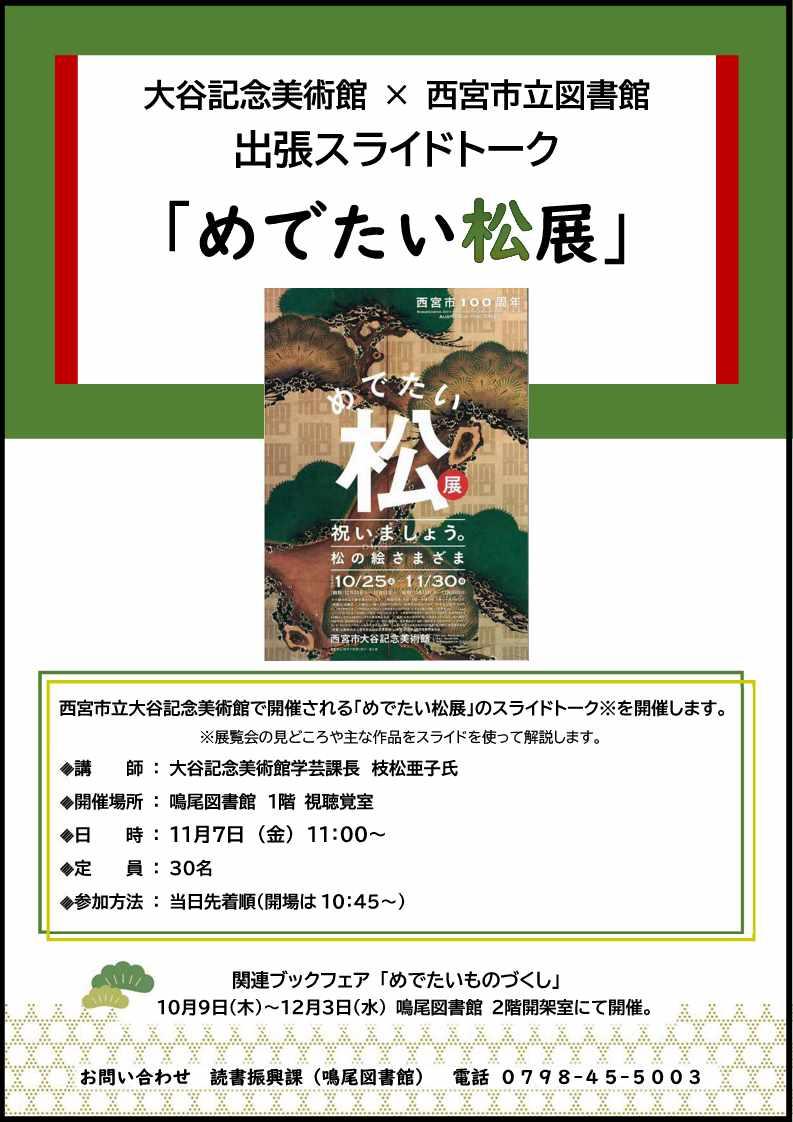 【鳴尾図書館】西宮市大谷記念美術館×西宮市立図書館出張スライドトーク「めでたい松展」