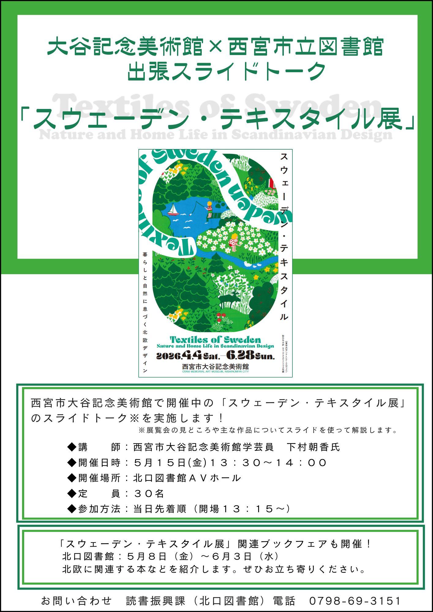 西宮市大谷記念美術館×西宮市立図書館 出張スライドトーク「スウェーデン・テキスタイル展」